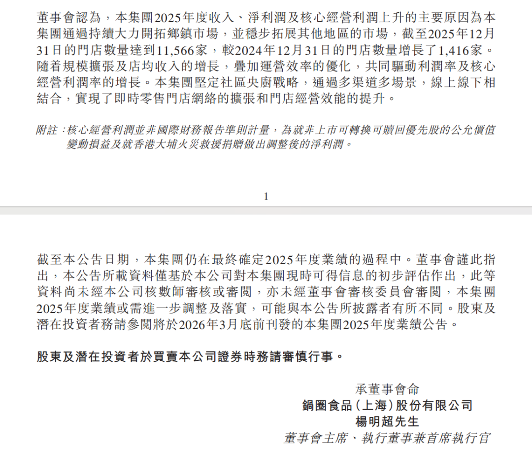 鍋圈2025業(yè)績(jī)預(yù)告,圖源:鍋圈官方微信公眾號(hào)