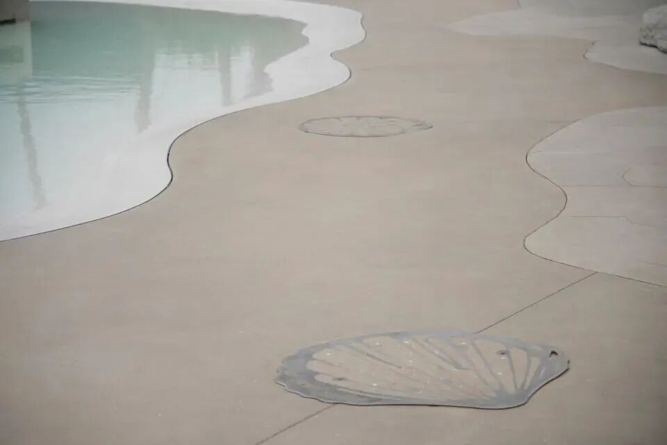 在設(shè)計細節(jié)方面,萬象濱海購物村也有不少亮點,如仿造沙灘海石的地面、貝殼造型的裝飾井蓋等等。