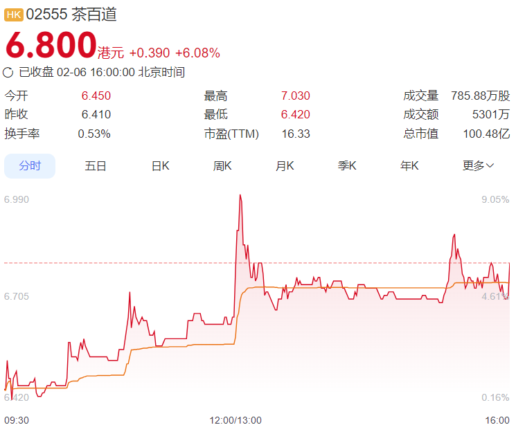 與一線疲于奔命形成鮮明對(duì)比的,是資本市場(chǎng)的熱烈反響。2月6日午后,港股茶飲板塊集體走強(qiáng)。