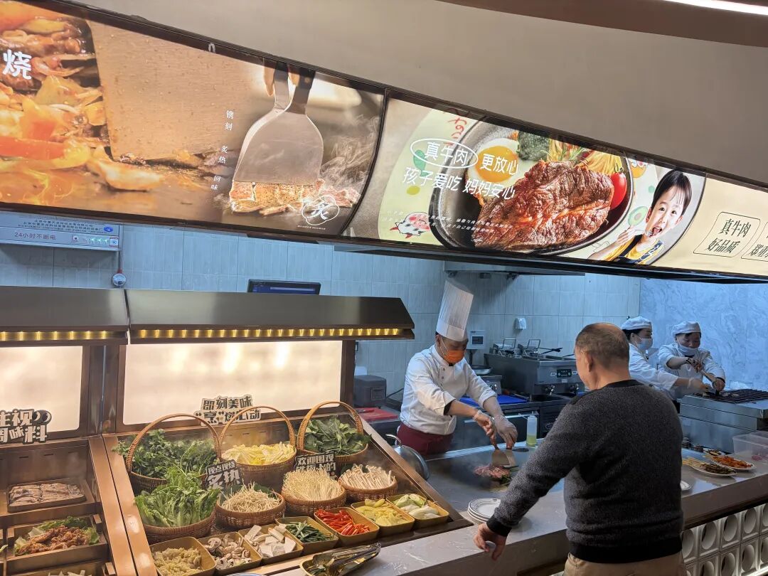 火鍋本質(zhì)上是“標(biāo)準(zhǔn)化”程度極高的品類,而“牛排+自助”的運(yùn)營難度則指數(shù)倍增。158款料理的實(shí)時(shí)供應(yīng),對后廚的動(dòng)線設(shè)計(jì)、SKU管理以及損耗控制提出了極為嚴(yán)苛的要求。