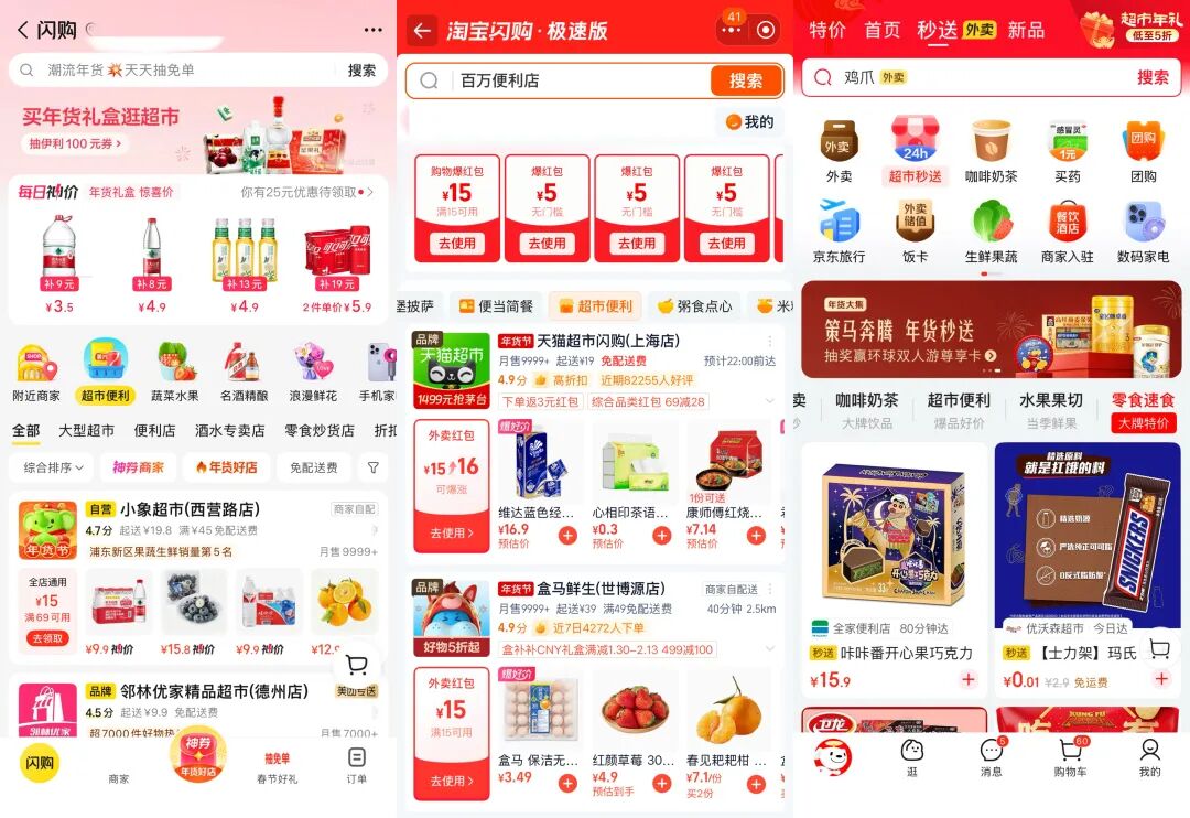 各平臺(tái)的即時(shí)零售服務(wù)