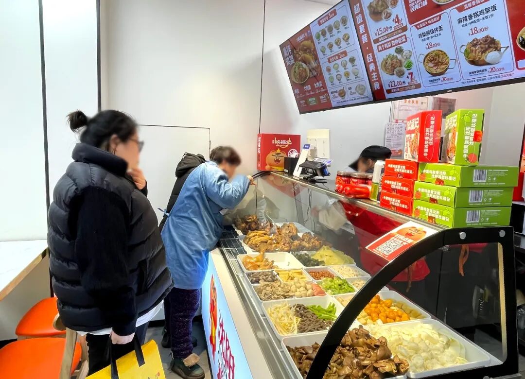 具體到產(chǎn)品上,該店的快餐區(qū)主打現(xiàn)炒,覆蓋早中晚時段,其中早餐提供包子、蒸餃等,午晚餐則以家常菜和湯品等老鄉(xiāng)雞主營的產(chǎn)品為主。新增冒菜區(qū)則含約14種葷菜、近20種素菜及3款湯底,與快餐區(qū)單點模式不同的是,冒菜區(qū)采用自選稱重計價,為消費者提供了多元選擇。