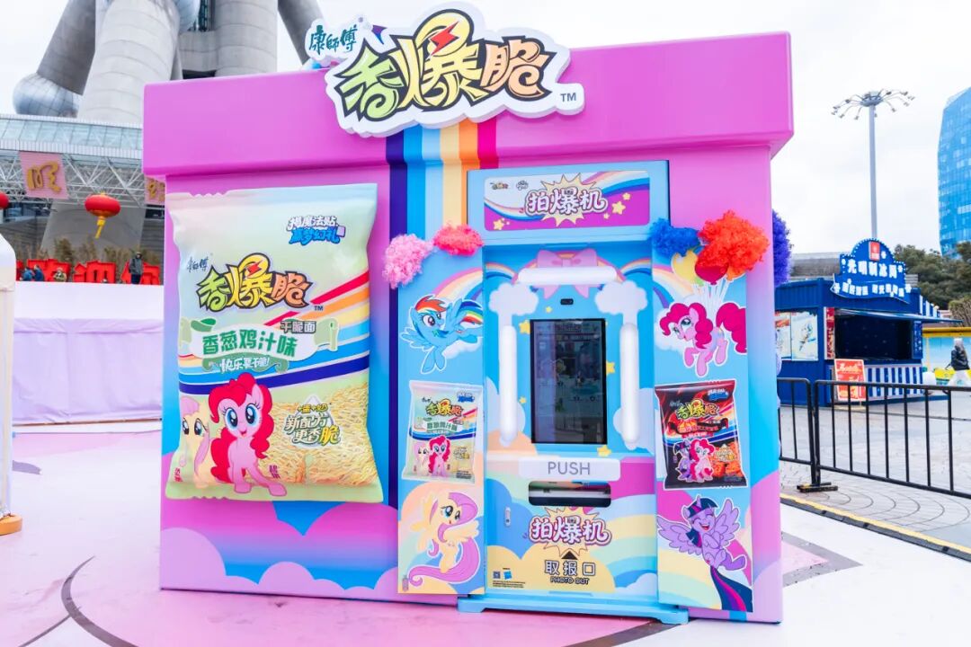在春節(jié)前后的2月4日至27日,康師傅香爆脆聯(lián)合小馬寶莉,在上海東方明珠塔下精心打造了以“友誼魔法”為主題的沉浸式線下新春市集——“小馬寶莉友誼魔法新春花園”,每一處設(shè)計(jì)都緊扣“體驗(yàn)驅(qū)動(dòng)轉(zhuǎn)化”核心戰(zhàn)略,擺脫了單純的品牌秀場(chǎng)屬性。