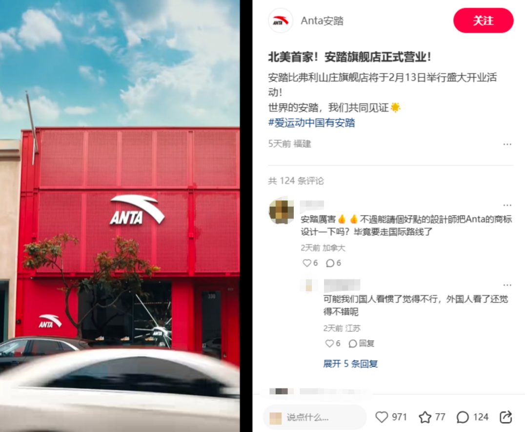 此外,ANTA安踏近日宣布,其位于加利福尼亞州比弗利道330號的美國首店將于2月13日正式開業(yè),NBA球星凱里·歐文(Kyrie Irving)與克萊·湯普森(Klay Thompson)將出席開業(yè)剪彩儀式。