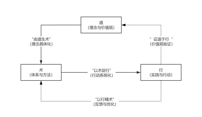 這是“道”、“術(shù)”、“行”三者辯證關(guān)系中最重要、也最容易被忽視的一環(huán)。它讓整個(gè)系統(tǒng)成為一個(gè)能夠自我進(jìn)化、充滿生命力的循環(huán)。