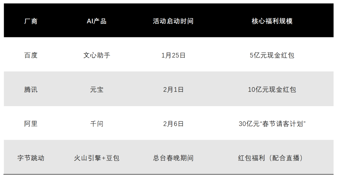 換言之,本輪AI紅包大戰(zhàn)的核心本質(zhì),并非培育用戶對AI產(chǎn)品的情感偏好,而是通過降低使用門檻、縮短學(xué)習(xí)周期,實(shí)現(xiàn)AI產(chǎn)品的常態(tài)化滲透。