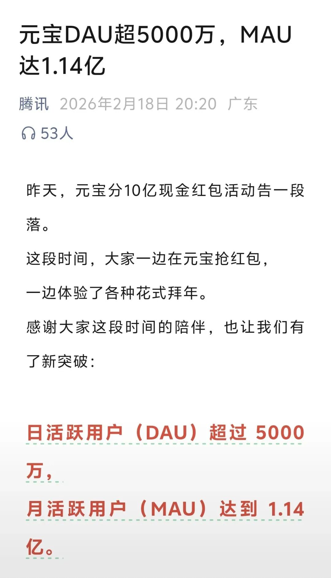 對比之下,騰訊元寶的春節(jié)戰(zhàn)役似乎略遜一籌。