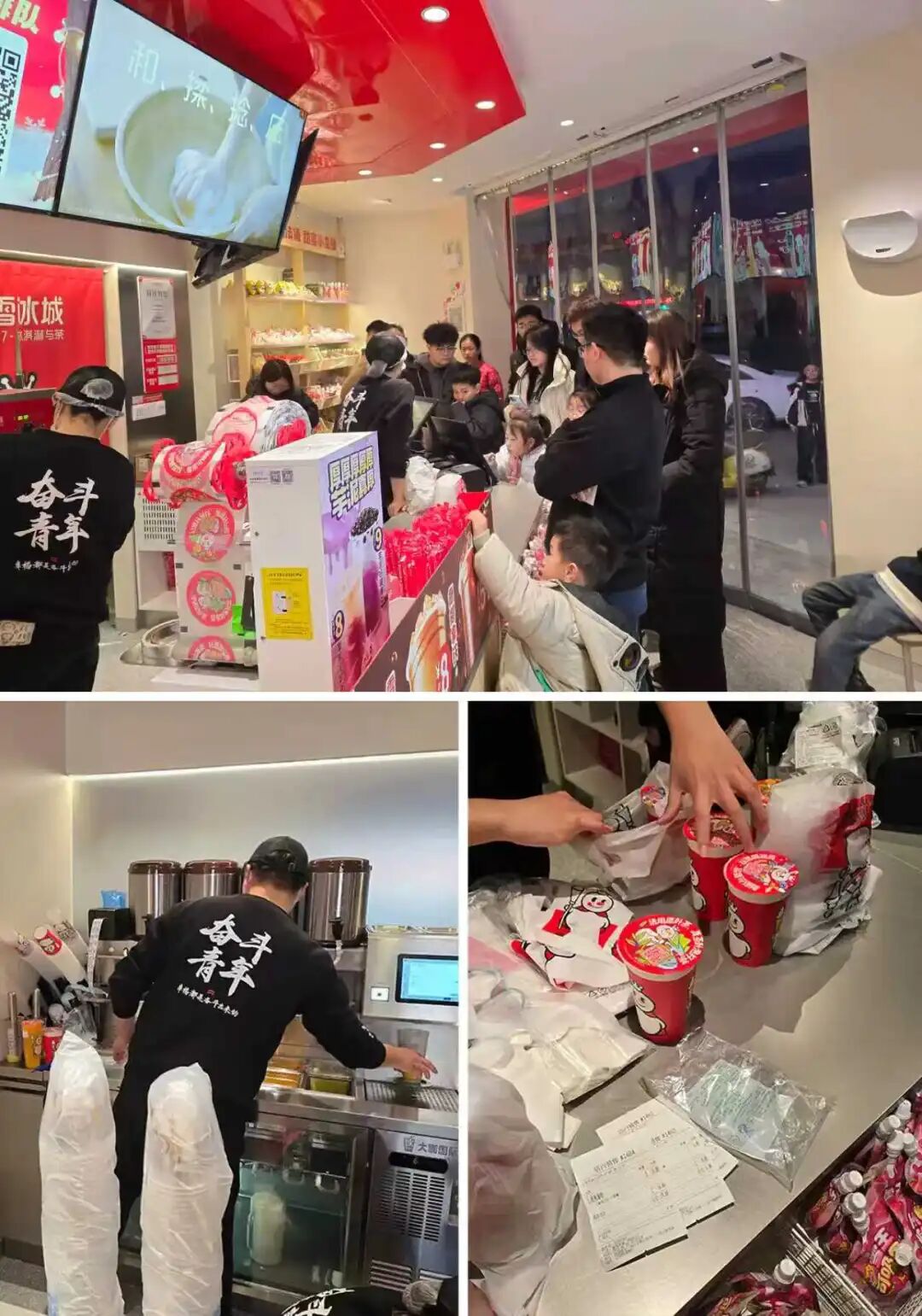 天黑了,蜜雪冰城店里擠滿了等餐的人 攝圖:內(nèi)參君
