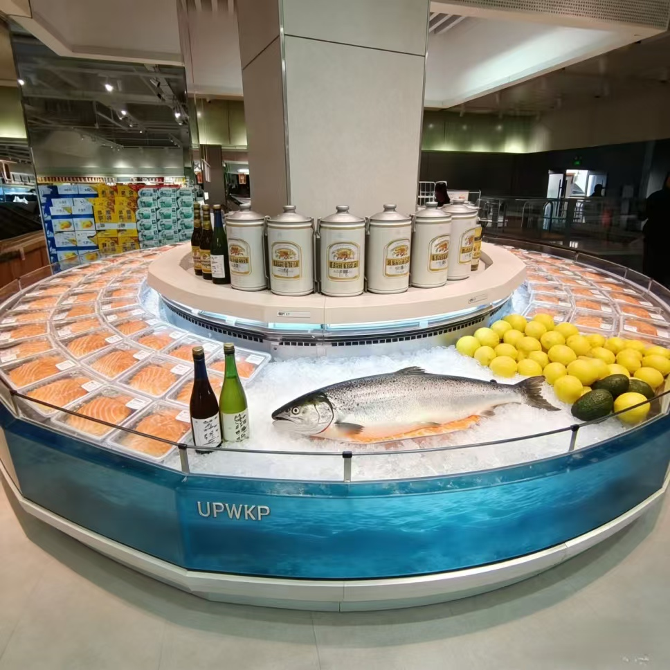 商超售賣要依靠的專業(yè)冷柜更是品質(zhì)關(guān)鍵,UPWKP等專業(yè)冷柜外觀簡約大氣內(nèi)膽和層板食品級不銹鋼包裹,在寬度高度和外觀及鎖鮮溫度上進(jìn)行了創(chuàng)新改進(jìn),在陳列上又可定制年夜飯和假期主題標(biāo)識,貼合專區(qū)專柜場景,搭配超白除霧玻璃與LED補(bǔ)光燈,既能防止霧氣遮擋,又能凸顯魚肉橙紅肌理;溫度上可選用專用-3-+3度風(fēng)冷型,高度在900-950mm之間前低后高傾斜臥式開放柜柜(如果條件允許也可選擇帶蓋直冷型肉柜防風(fēng)干防變色),青島UPWKP冷鏈已于2025年創(chuàng)新研發(fā)出溫度在-2-+2之間高度在950-1000之間的半高式傾斜式單層開放柜,同時升級出新款1150-1200高度的迷你款新型背靠背一體陳列柜,各種陳列組合特別適合放在賣場中間環(huán)繞售賣,當(dāng)然,單層式陳列要能打底鋪冰,濕度最好保持在85%以上,杜絕柜體的塑料制品杜絕魚肉可能的風(fēng)干失水變色,讓鮮度一目了然,當(dāng)然,目前包裝類三文魚的銷售還是占據(jù)絕對主流。