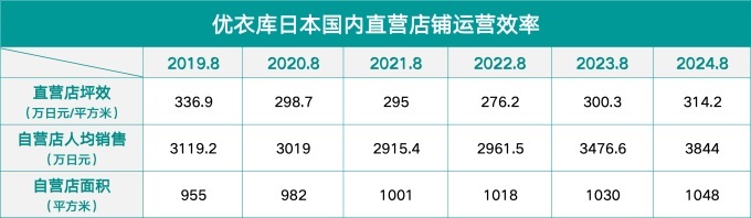 優(yōu)衣庫的店鋪效率如何?以2024年度日本國內(nèi)店鋪為例,優(yōu)衣庫店鋪坪效為314.2萬日元(約合人民幣13.85萬元),,島村為110.9萬日元(約合人民幣4.89萬元),相差3倍;庫存周轉(zhuǎn)方面,日本國內(nèi)直營店的庫存周轉(zhuǎn)率從2019年8月的2.15倍,到2023年8月達(dá)到2.83倍,2024年8月提高到3.42倍,比2019年8月提升了60%,比島村高出13%。如此高效的運(yùn)營系統(tǒng),底層邏輯是多階段積累庫存的包容性政策,與靈活的店鋪終端機(jī)制相得益彰。