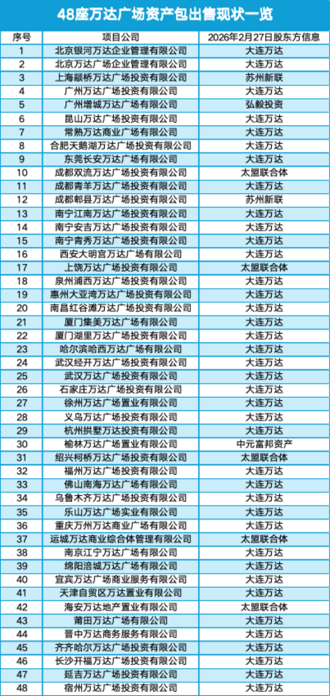 據(jù)商業(yè)客不完全統(tǒng)計(jì),2023年至2024年末,萬達(dá)累計(jì)出售35座萬達(dá)廣場;2025年初也出售了5個(gè)項(xiàng)目;2025年4月,萬達(dá)將酒店管理業(yè)務(wù)以24.97億元出售予同程旅行;5月?lián)袌鱿ⅲf達(dá)將48座萬達(dá)廣場打包尋求買家,這批資產(chǎn)估值約500億元……