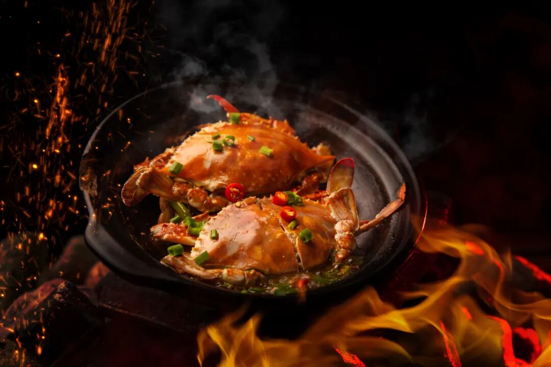 各類海鮮如花甲、蝦、鮑魚、梭子蟹、魷魚等等,從海鮮池?fù)瞥,一股腦下鍋。砂鍋預(yù)熱到冒煙,猛火快攻。高溫迅速鎖住水分,海鮮不干不柴,反而更彈。