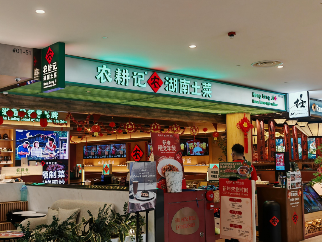不過,叻沙、肉骨茶固然可口,最引人思念的還是那一口家鄉(xiāng)味。年節(jié)期間,中國(guó)游客若想在新加坡吃到中國(guó)菜,多半會(huì)看到一紅一綠兩塊招牌——紅色是海底撈,綠色則是一個(gè)主打“湖南土菜”的餐飲品牌:農(nóng)耕記。