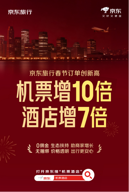 京東旅行發(fā)布2026春節(jié)訂單數(shù)據(jù):機(jī)票訂單增長(zhǎng)10倍