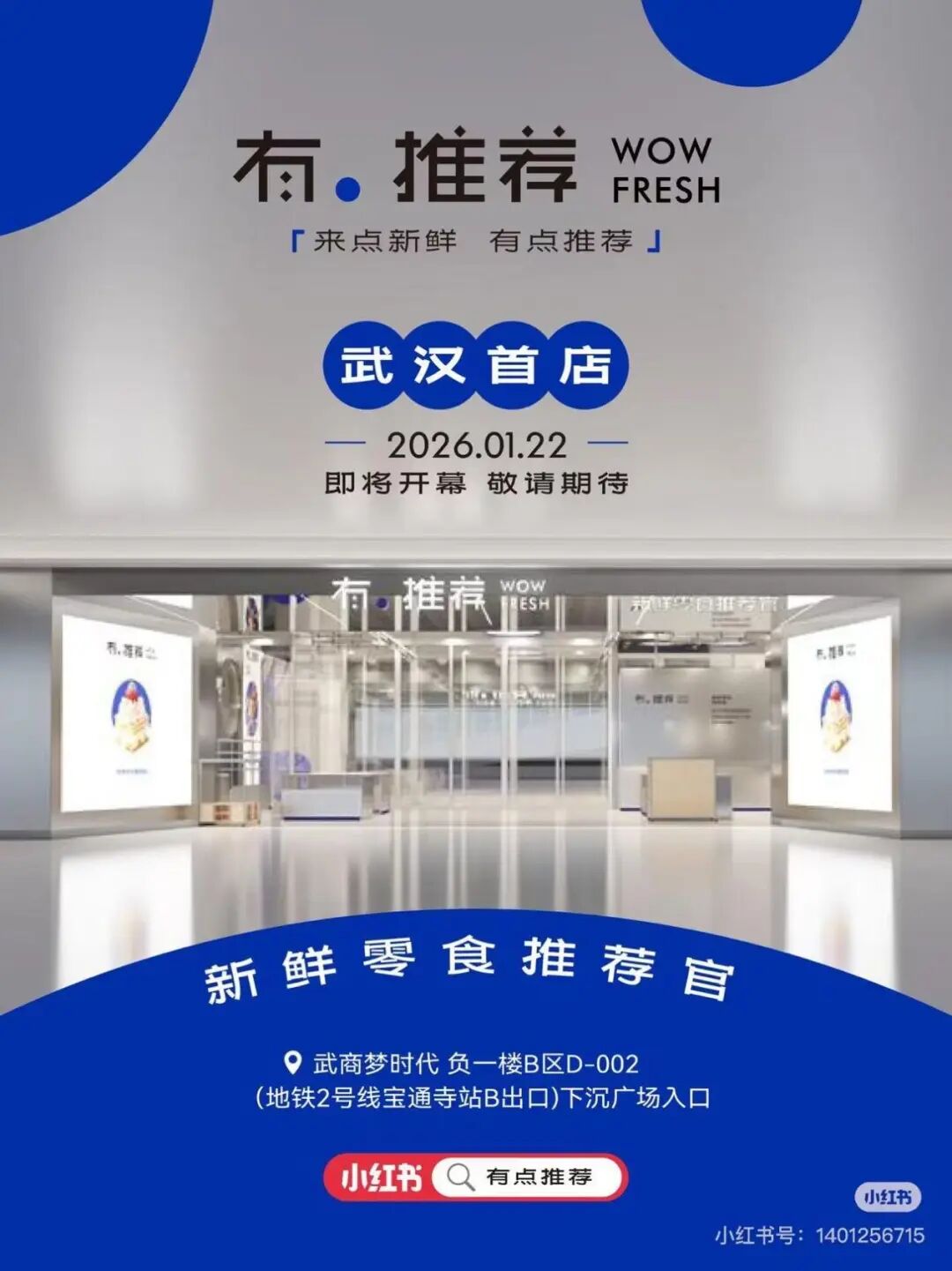 “有.推薦”首店落子武商夢時代B1層下沉廣場核心通道,占據(jù)商圈主入口層的黃金點位。