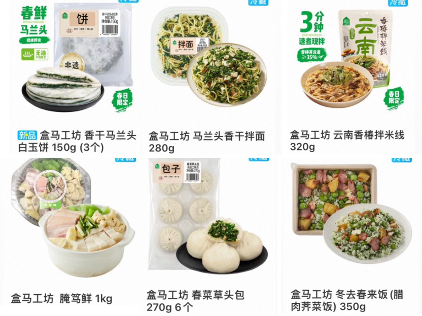 除板藍(lán)根青菜制品外,盒馬還推出薺菜搭配臘肉的冬去春來飯、香干馬蘭頭拌面、香干馬蘭頭白玉餅、云南香椿拌米線、腌篤鮮等即食春菜菜肴,讓春鮮“一步到胃”。