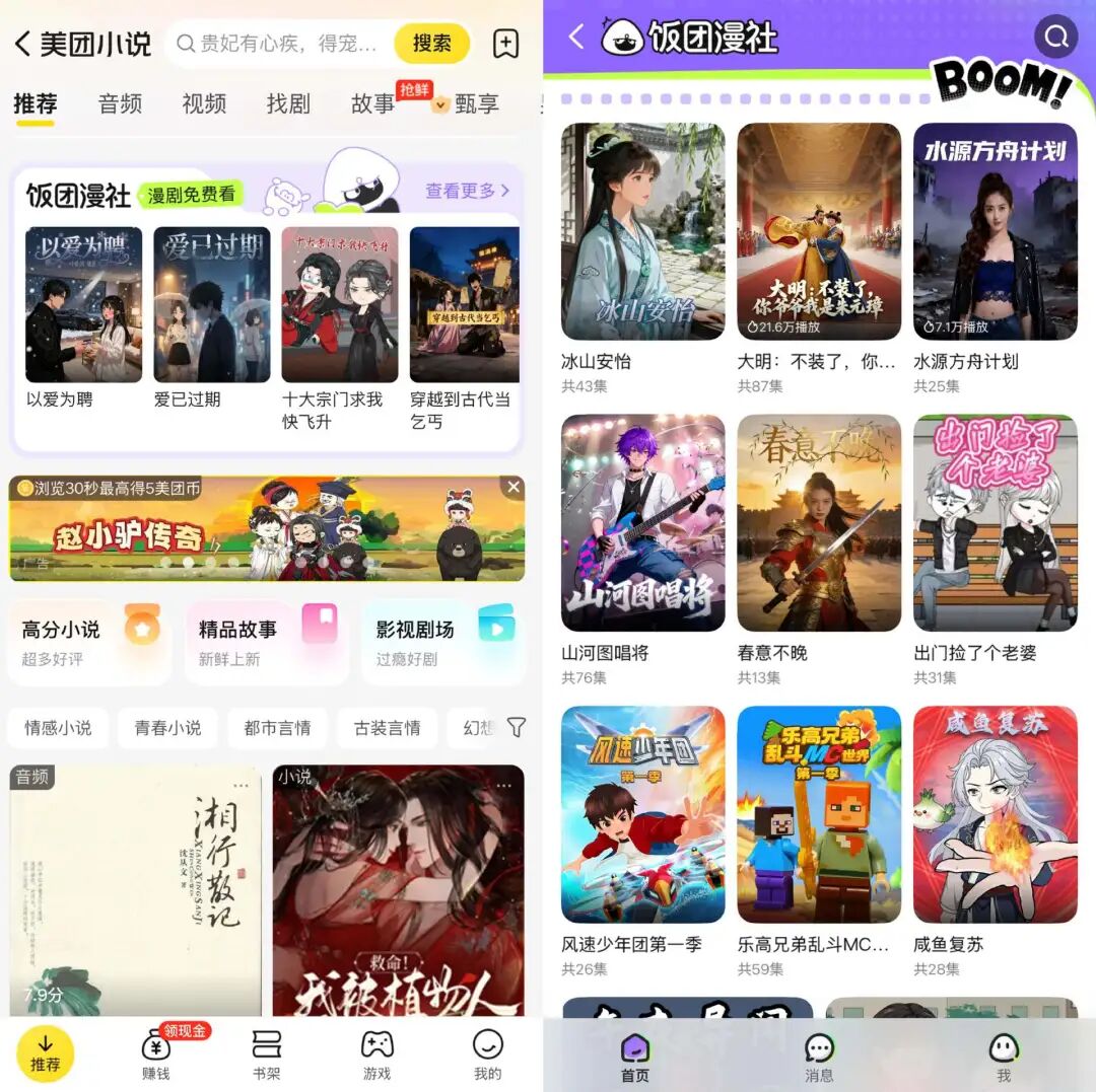 內(nèi)部的整合,實(shí)際上是美團(tuán)將零散的內(nèi)容板塊(短視頻、短劇、小說(shuō)、游戲)進(jìn)行軍種合并,組建了一支統(tǒng)一的“內(nèi)容方面軍”。而今天的飯團(tuán)漫社,更像是在2026年推出的新式武器。