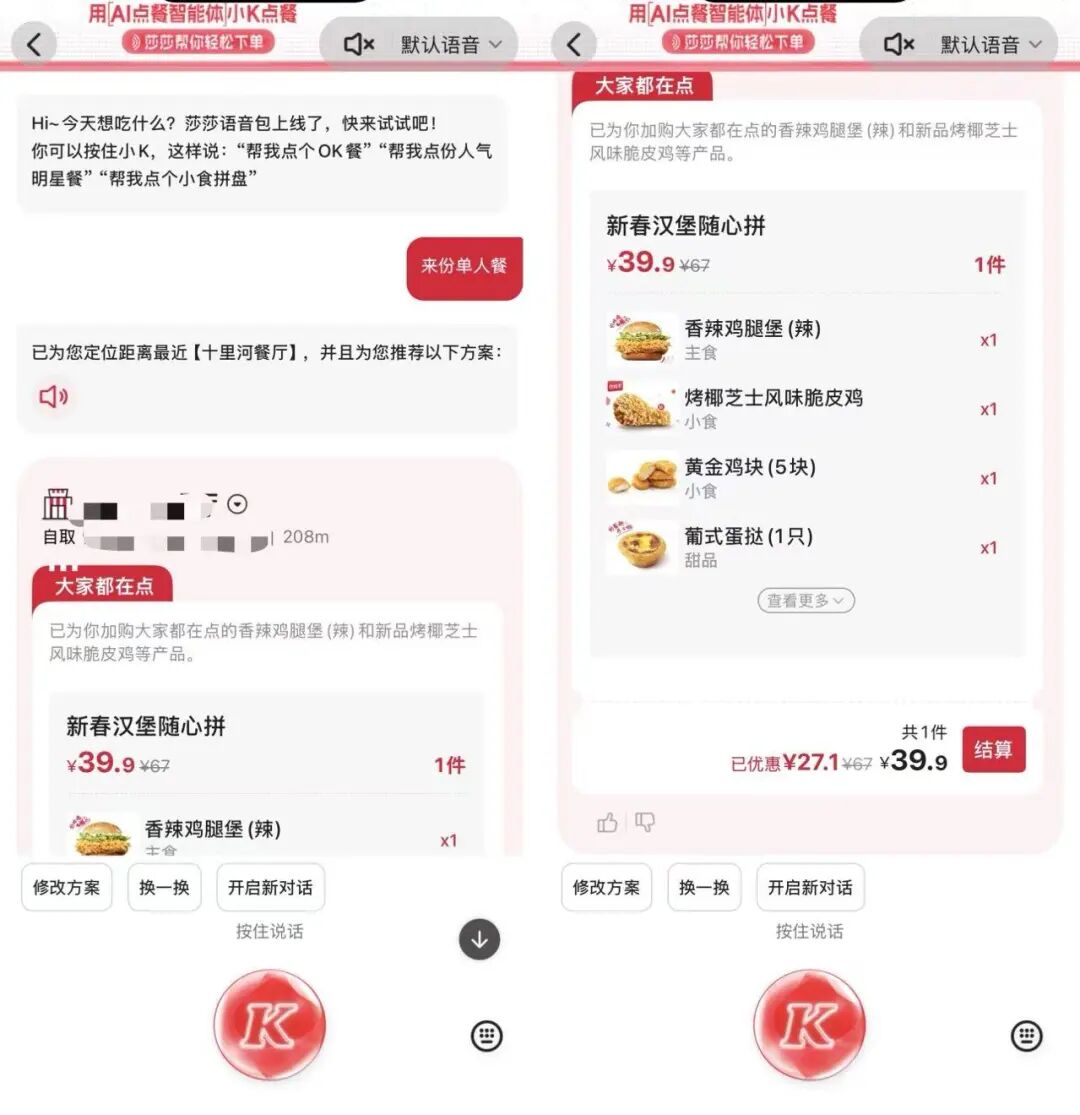 如今,百勝中國(guó)已經(jīng)擁有龐大的線下網(wǎng)絡(luò),包括超1.2萬(wàn)家肯德基和4000多家必勝客,且還在進(jìn)一步數(shù)字化。近期,肯德基APP接入千問(wèn),用戶可以借助AI智能點(diǎn)餐助手“小K”完成“一句話點(diǎn)餐”。值得關(guān)注的是,這項(xiàng)功能,仍然是APP所獨(dú)有。