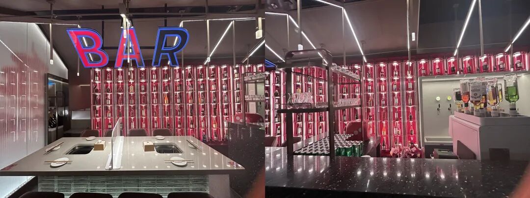 店內(nèi)設(shè)有獨(dú)立BAR調(diào)酒區(qū),調(diào)酒師可現(xiàn)場調(diào)酒,提供精釀啤酒、特調(diào)微醺系列及貴醬白酒等多款酒水。