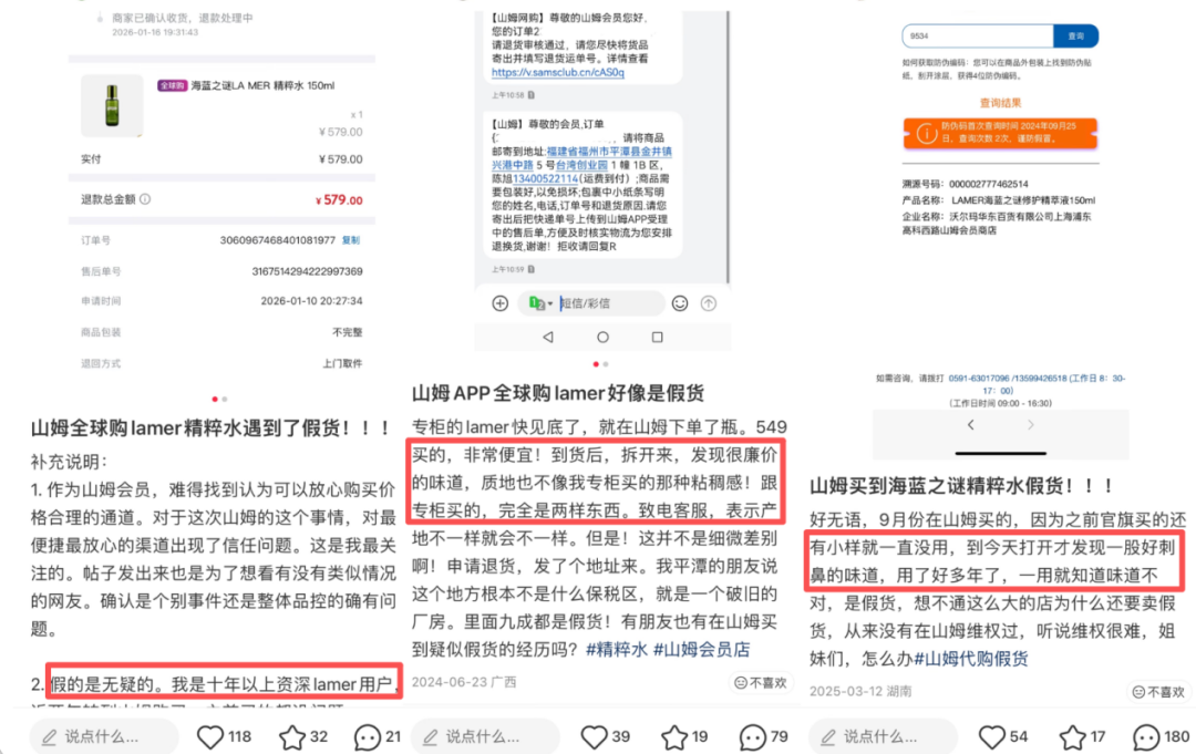 最近,隨著雅詩(shī)蘭黛一紙?jiān)V狀將山姆母公司沃爾瑪告上法庭,社交平臺(tái)上,消費(fèi)者關(guān)于在山姆、沃爾瑪買(mǎi)到疑似假貨的吐槽集中爆發(fā)。