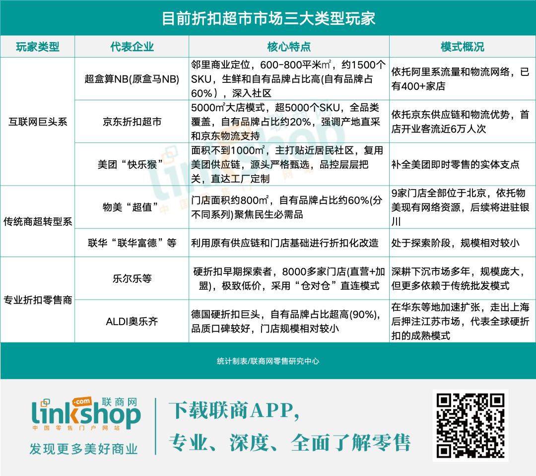 京東折扣超市:大店模型(5000㎡),5000+SKU,主打一站式購齊、下沉市場,背后是京東供應(yīng)鏈+流量的加持,像重型坦克。