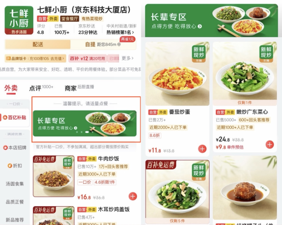 京東旗下七鮮小廚全國門店上線“長輩專區(qū)”