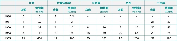 在日本商業(yè)圣手、大榮集團創(chuàng)始人中內功寫的《我的低價哲學》中,披露了超市行業(yè)起步期間主要企業(yè)的業(yè)績發(fā)展軌跡。后來,其中提到的企業(yè)發(fā)生整合變化,十字屋歸到大榮、大榮歸到永旺集團。