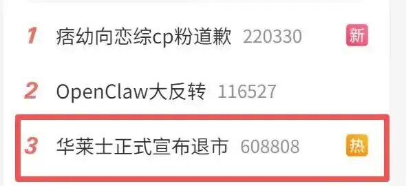《新品略財(cái)經(jīng)》關(guān)注到,3月11日,“華萊士正式宣布退市”話題沖上熱搜,當(dāng)天一度曾沖上微博熱搜第三名,引發(fā)全網(wǎng)關(guān)注和熱議。