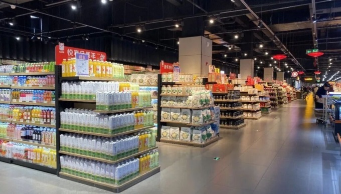 走進(jìn)悅惠超市華中城店,首先感受到的是空間的通透與從容。門(mén)店取消了傳統(tǒng)的強(qiáng)制動(dòng)線,拓寬主通道至3.6米,將貨架高度降低至1.6米,讓視野更加開(kāi)闊。這種“做減法”的布局,不僅方便老人和孩子輕松拿取商品,更傳遞出一種平視與尊重的商業(yè)態(tài)度。