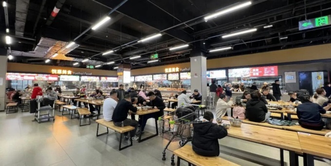 在體驗(yàn)層面,門(mén)店則做了“加法”。大幅擴(kuò)增的烘焙區(qū)、熟食區(qū)、悅惠美食采用全透明開(kāi)放式廚房設(shè)計(jì),“明廚亮灶”讓制作過(guò)程一覽無(wú)余。現(xiàn)烤面包的香氣、現(xiàn)場(chǎng)加工烹飪的熱氣,共同營(yíng)造出充滿(mǎn)煙火氣的消費(fèi)場(chǎng)景,讓購(gòu)物成為一種感官享受。