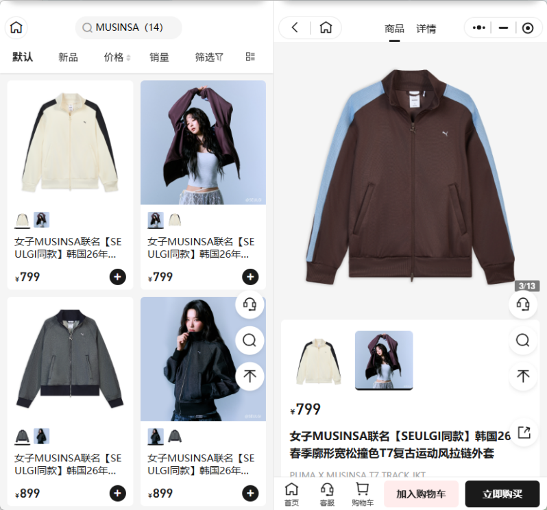 近日,彪馬釋出與韓國(guó)時(shí)尚平臺(tái)MUSINSA的首次聯(lián)名產(chǎn)品,包括復(fù)古運(yùn)動(dòng)外套、短裙、長(zhǎng)褲等韓式穿搭服飾,價(jià)格在450-900元左右;同時(shí)品牌空降上海安福路的MUSINSA STORE開(kāi)設(shè)快閃店。