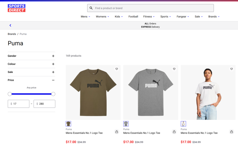 弗雷澤斯旗下零售商Sports Direct上架的彪馬產(chǎn)品丨截圖來(lái)源于Sports Direct官網(wǎng)