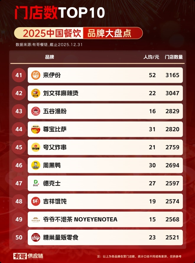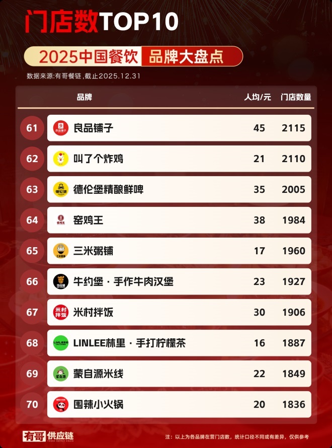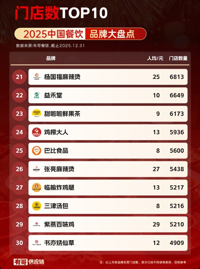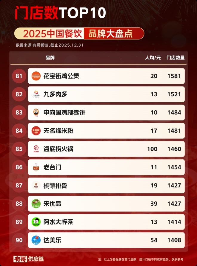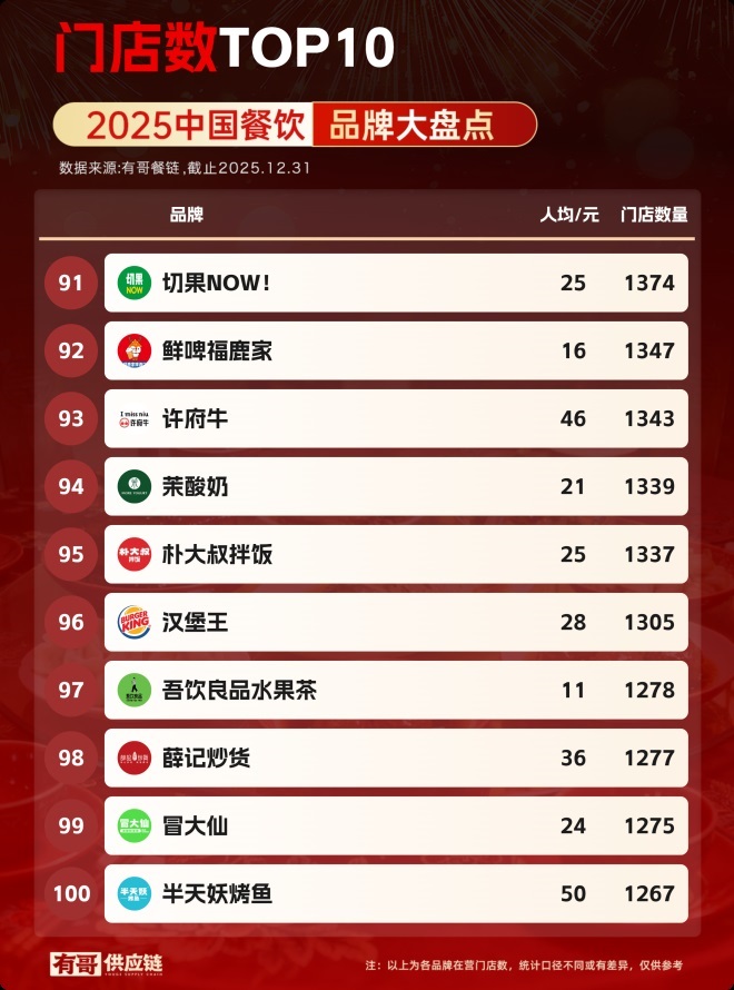 又到了一年一度的餐飲品牌門店總數(shù)盤點(diǎn)時(shí)刻。