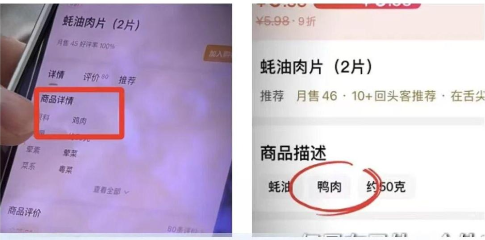 媒體實地調查發(fā)現,廈門、漳州等地的多家門店中,肥牛卷、黑椒肉柳、閩南肉羹等多款在外賣平臺及線下標注為牛肉、豬肉的食材,后廚配料表均顯示主料為鴨肉;同一款蠔油肉片,在不同外賣平臺竟分別標注為雞肉、鴨肉,品類界定毫無規(guī)范可言。涉事門店的相關食材外賣月銷均達數千單,意味著大量消費者在不知情的情況下,為虛假標注的食材支付了對應溢價。