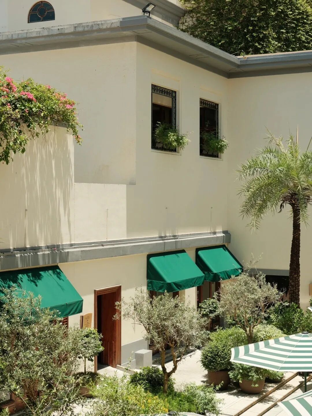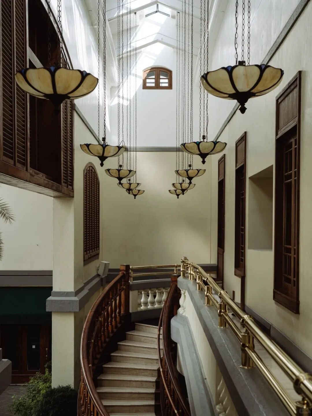 影灣園穿越時(shí)間的歲月感,在張愛玲文學(xué)IP加持下,成為體驗(yàn)純正港味的一方天地。酒店里跨世紀(jì)的老物件都被保留下來:噴泉水池、旋轉(zhuǎn)樓梯、門頭紋章……庭院里擺放的綠白遮陽(yáng)傘、折疊椅和小圓桌,還在呼應(yīng)老淺水灣酒店的優(yōu)雅下午茶時(shí)光。