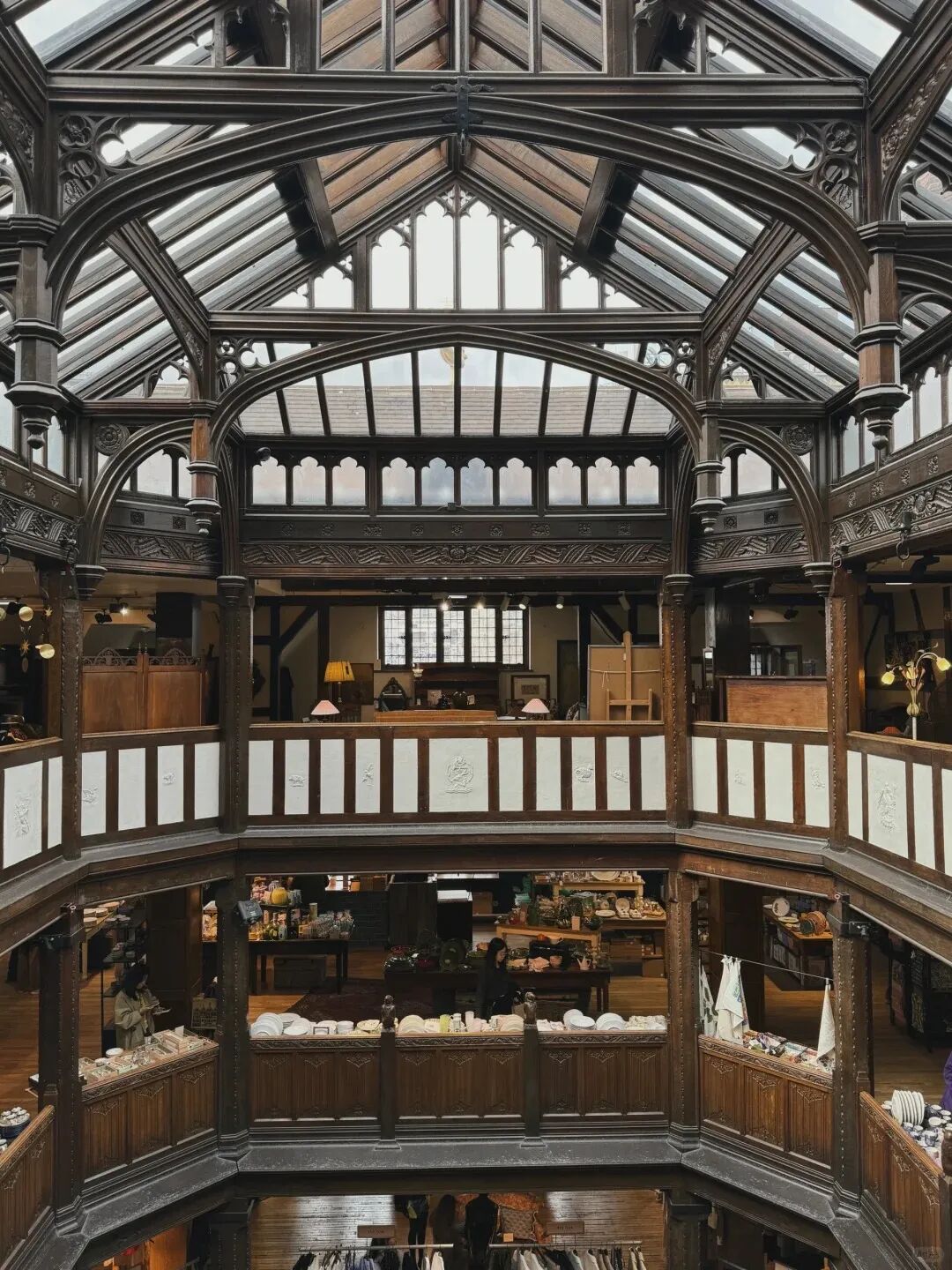 Liberty的建筑木材取自皇家戰(zhàn)艦,商場(chǎng)內(nèi)部的挑空中庭、木雕花欄桿和拱頂結(jié)構(gòu),都在還原中世紀(jì)都鐸建筑的宏偉和精致。