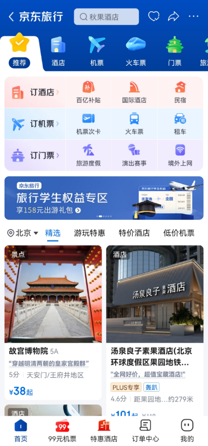 不止機票。酒店預訂環(huán)節(jié),京東旅行同樣“拆掉”了那些容易被忽略的隱藏項。
