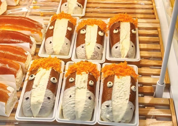 因?yàn)槲骞俦壤燥@違和,“牛馬面包”的戲稱迅速傳開。再加上不同門店做出來的模樣各不相同,這種“隨機(jī)開盲盒”的屬性,反而狠狠助推了二次傳播;鸪鋈χ螅琌le’、采蝶軒等品牌也紛紛跟風(fēng),推出牛馬卷、牛馬酥、牛馬禮盒,集體蹭上這波丑萌熱度。
