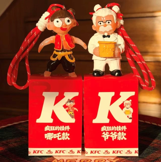 快餐圈則把“丑營(yíng)銷”和IP結(jié)合得更徹底。肯德基近期與《哪吒之魔童鬧!罚倪2)聯(lián)名,推出了一款丑哪吒掛件,完全放棄以往帥氣陽剛的路線,1:1還原電影里哪吒重塑肉身時(shí)的粉泥人形象:蓮藕身形、紅肚兜,五官比例失調(diào)、眼神放空,被網(wǎng)友笑稱“360度全死角”,看上去就像小孩手工課作品,滿是潦草的丑萌感。想要這款掛件,必須購買49元的聯(lián)名套餐,包含蛋撻、可樂和原味雞。沒想到這種看似“翻車”的設(shè)計(jì),反而點(diǎn)燃了全民玩梗的熱情,讓整個(gè)聯(lián)名在網(wǎng)上實(shí)現(xiàn)病毒式傳播。