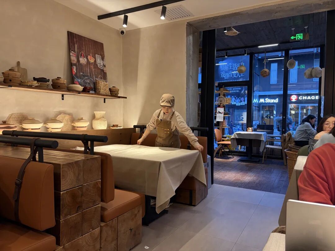 但仔細(xì)端詳,每一處細(xì)節(jié)都透著不經(jīng)意的講究:厚重實(shí)木方墩卡座、陶瓷材質(zhì)餐具、軟包桌面并鋪設(shè)餐布——品質(zhì)感與用餐體驗(yàn),對(duì)標(biāo)的是正餐而非快餐的標(biāo)準(zhǔn)。