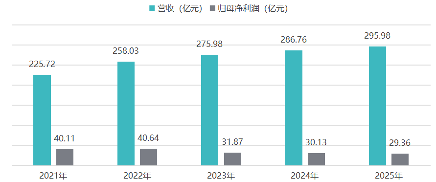 2025年,公司營(yíng)業(yè)收入同比提高3.2%至295.98億元;歸母凈溢利29.36億元,保持9.9%的凈利率。盈利指標(biāo)上,李寧公司毛利率同比下降0.4個(gè)百分點(diǎn)至49%;權(quán)益持有人應(yīng)占權(quán)益回報(bào)率同比下降1個(gè)百分點(diǎn)至10.9%。