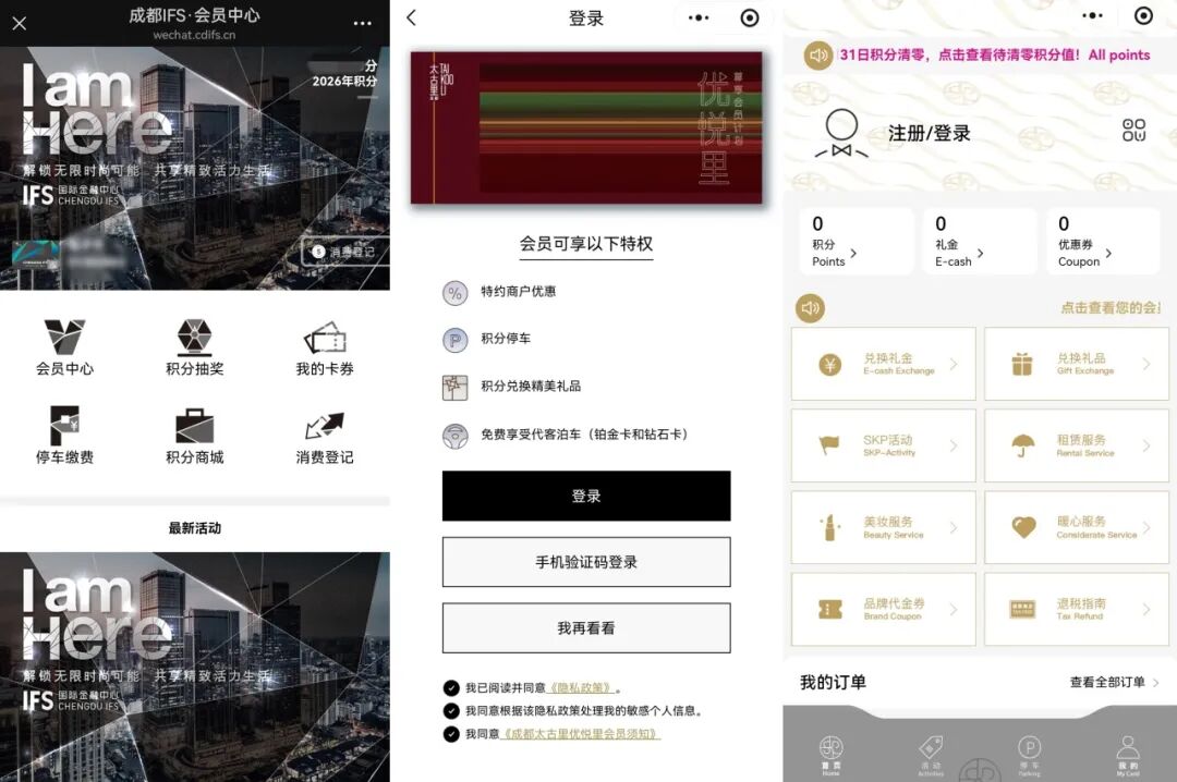 ○成都IFS、成都太古里、成都SKP的會員登錄界面