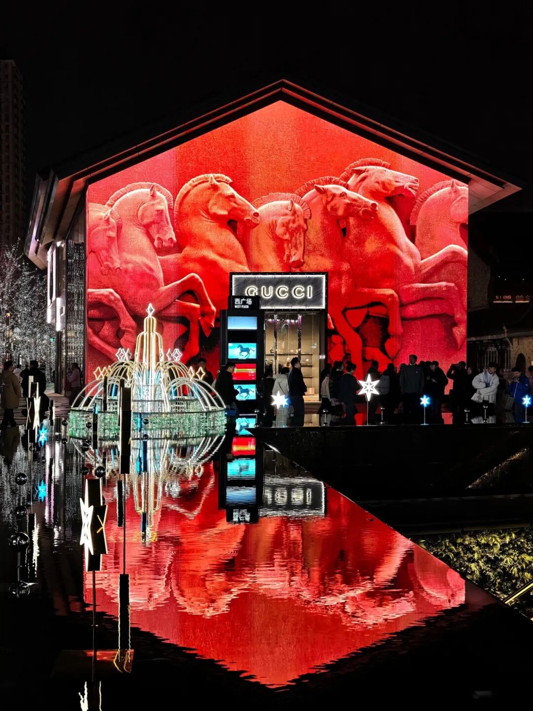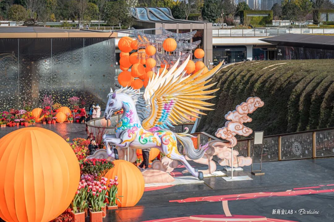如今,運營方已然在轉(zhuǎn)變思路,先是利用空間優(yōu)勢,引入市集活動及與品牌方、消費者有更強互動的策展活動,如全球最大LABUBU許愿樹、120棵真松樹組成的冬日森林,更有今年元宵節(jié)期間刷屏網(wǎng)絡(luò)的鱉魚巡游燈會。
