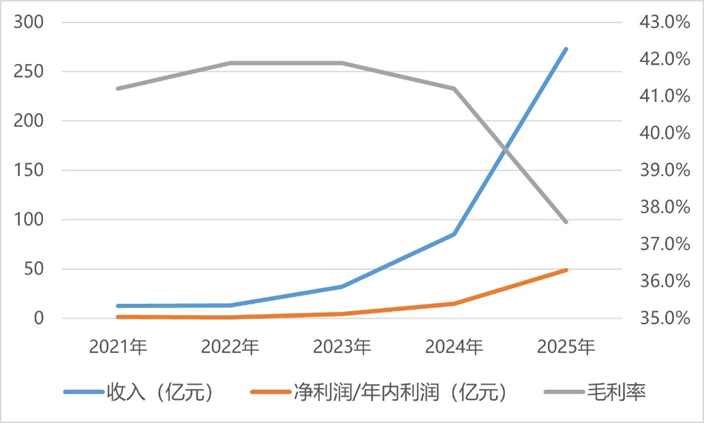 同時(shí),年內(nèi)利潤(凈利潤)48.68億元,同比增長230.5%;于報(bào)告期間,毛利額為102.74億元,較2024年增長193.4%;毛利率為37.6%。