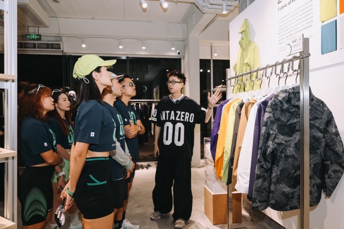 廣州安踏0碳使命店店長(zhǎng)向參與者介紹安踏環(huán)保面料