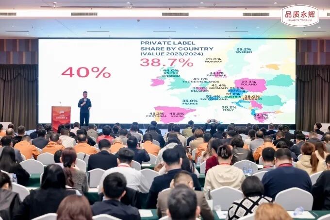 剛才說(shuō)到38.7%是歐洲自有品牌市占率,品質(zhì)永輝定了40%,希望到2030年能夠達(dá)到這樣一個(gè)市場(chǎng)份額。有的國(guó)家(自有品牌市占率)非?鋸垼窈商m、英國(guó)都在44%、45%,瑞士在52%,西班牙在45%,葡萄牙在45%。零售業(yè)發(fā)達(dá)國(guó)家,自有品牌占比非常高。今天在Costco也好、山姆也好,都已經(jīng)過(guò)了1/3。