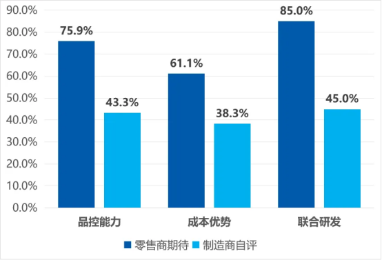 品控問題:75.9%的零售商認(rèn)為品控是首要痛點,但只有43.3%的供應(yīng)商認(rèn)同這一判斷;