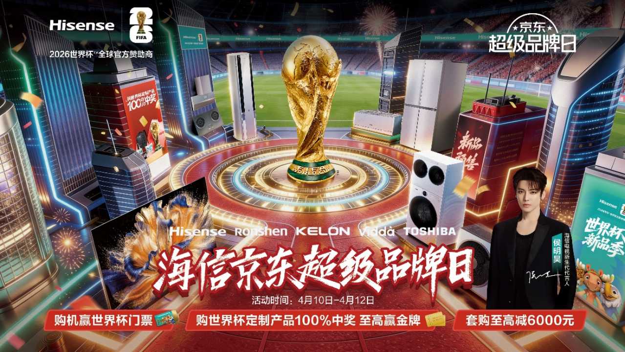 4月10日至12日,京東MALL、京東電器與海信聯(lián)合打造的超級品牌日即將盛大啟幕。正值2026美加墨世界杯倒計時之際,雙方攜手推出電視、空調(diào)、冰箱、洗衣機等全品類的AI智能新品矩陣,購全屋家電至高立減6000元,疊加海信世界杯專屬福利與百萬小區(qū)煥新計劃,為消費者打造一場集智能體驗、場景沉浸與超值優(yōu)惠于一體的家電消費狂歡。