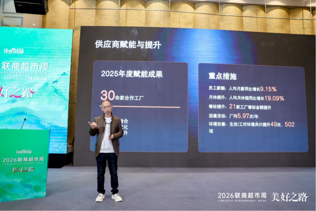 這里有好多數(shù)據(jù),講一個重點。前幾天千島湖公司開2026年新年動員會,打了一個很重要的標題,2026年是翻番的關(guān)鍵年。2023年千島湖跟胖東來自有品牌合作時,他們定了一個五年員工收入翻番的計劃。