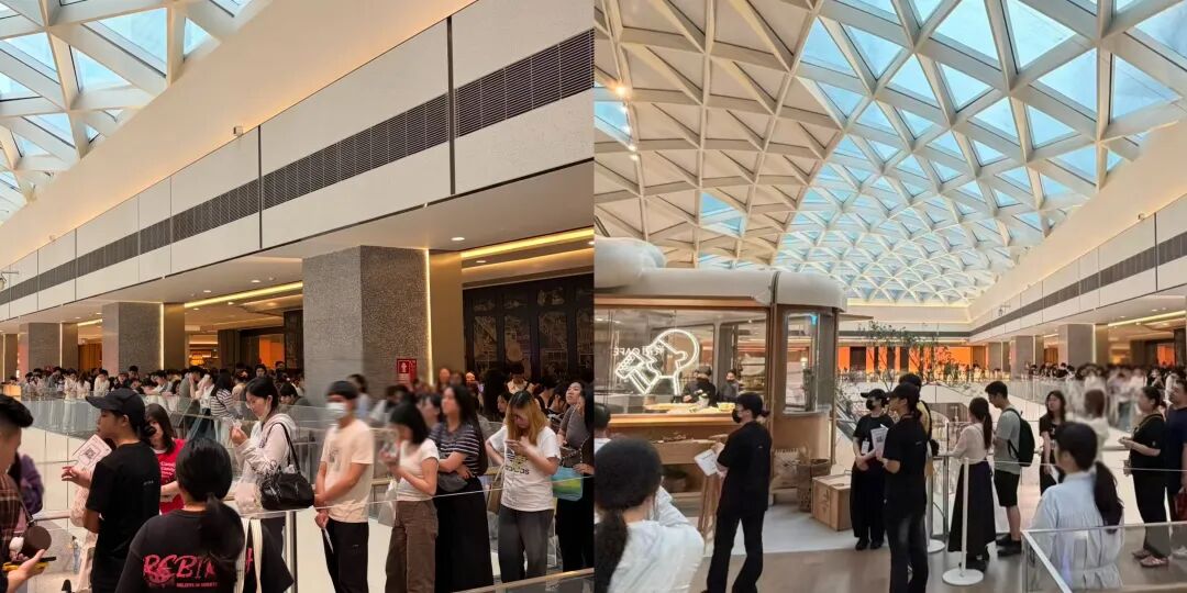 如今,Heytea Lab 2.0帶著更成熟的方案回歸上海,首次將Bake Lab(烘焙實驗)、Cake Lab(蛋糕實驗)、Tea Lab(茶飲實驗)、Gelato Lab(冰淇淋實驗)集合于同一空間。開業(yè)即引發(fā)排隊盛況——據(jù)多方媒體報道,當日眾多消費者凌晨到場,等候超5小時,單日排隊近千人。